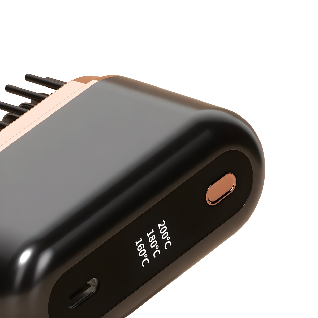 Cepillo alisador eléctrico de alta calidad, diseñado para ofrecer un peinado rápido y eficaz en cualquier momento. Gracias a su diseño compacto y portátil, es ideal para llevar en el bolso o de viaje.