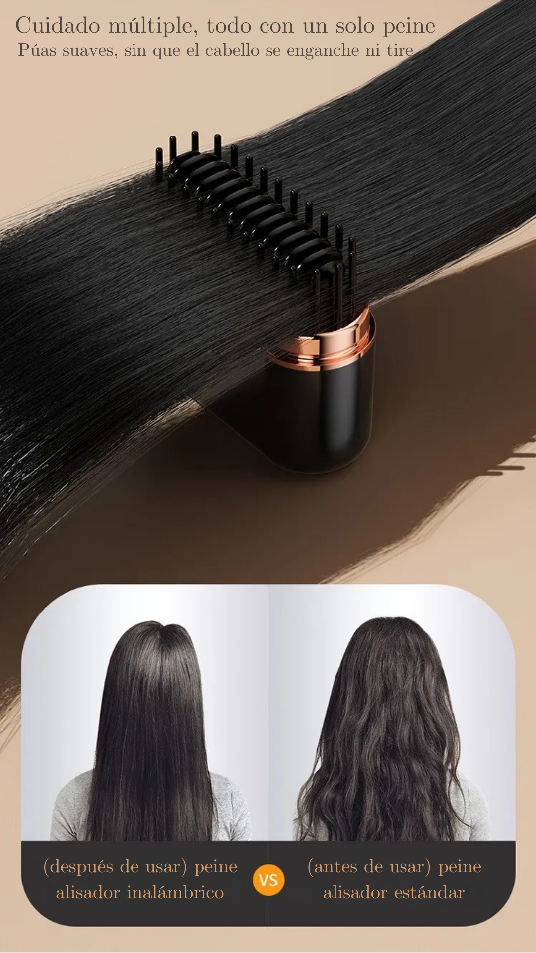 Transforma tu cabello en minutos con un acabado pulido, brillante y sin frizz. Su diseño 2 en 1 combina alisado y desenredo con precisión profesional, mientras el control inteligente de temperatura protege cada fibra. Inalámbrico, elegante y seguro al tacto: lujo y practicidad en la palma de tu mano.
